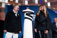 WASHINGTON (AP) — Melania Trump said “it's incredible” to see her white and black-trimmed inaugural ball gown on display at the Smithsonian Institution's National Museum of American History.