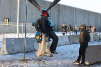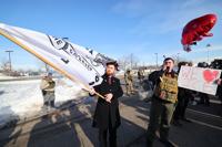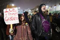 On Friday, protesters were outside a federal facility serving as a hub for the immigration crackdown that began Tuesday in Minneapolis and St. Paul. That evening, hundreds protested and marched outside two hotels in downtown Minneapolis where immigration enforcement agents were supposed to be staying. Some people were seen breaking or spray painting windows and state law enforcement officers wearing helmets and holding batons ordered the remaining group of fewer than 100 people to leave late Friday.