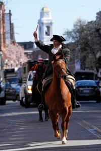 BOSTON (AP) — The clip-clop of horse hooves echoed as Paul Revere rode through the streets of Boston’s North End on Monday — a reenactment of his historic midnight ride, but with some modern-day tweaks: This time, the revolutionary hero set out under bright daylight and a police escort.