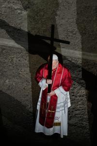 For the first two years of his papacy, Benedict XVI carried the cross for the first station inside the Colosseum, then followed other bearers in the procession that ends on a platform on the Palatine Hill.