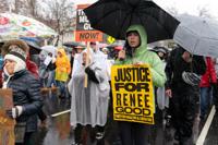 The protest was one of hundreds planned for towns and cities across the country over the weekend. It came in a city on edge since the killing of Renee Good on Wednesday by an Immigration and Customs Enforcement officer.