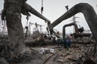 Workers clean up damage at Darnytsia Thermal Power Plant after a Russian attack in Kyiv, Ukraine, Wednesday, Feb. 4, 2026.