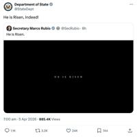 “He is risen,” declared the Department of Homeland Security and the State Department.