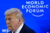 His arrival in Davos was delayed after a minor electrical problem on Air Force One forced a return to Washington to switch aircraft. As Trump’s motorcade headed down a narrow road to the speech site, onlookers — including some skiers — lined the route, some making obscene gestures.