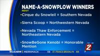 The winning snowplow names, representing the three regions of Nevada, are:
