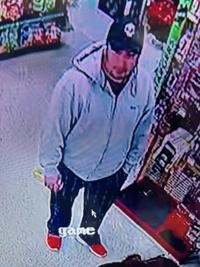 Prior to the crash, he was seen wearing a dark baseball hat (looks like a punisher logo on front), a light-colored zip up hoody, dark pants, and red shoes.