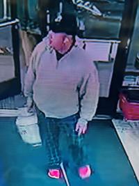 The suspect is described as a white or Hispanic male in his late 20s or early 30s, approximately 5’08” and 220lbs with a goatee.