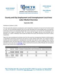 In the three Metropolitan Statistical Areas (MSA), the unemployment rates were 5.3 percent in the Las Vegas area, 3.1 percent in Reno, and 3.4 percent in the Carson area in September 2022.