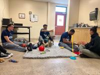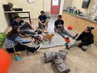 Members of the Nevada Wolf Pack, including KJ Hymes, Nick Davidson and Hunter McIntosh, stopped by the Nevada Humane Society to give some much-deserved attention the puppies in the shelter.