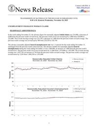 The total number of Americans filing for jobless benefits for the week ending Nov. 15 rose 7,000 to 1.96 million.