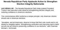 “The Governor believes elections should be run by the states. However, he supports common sense reforms to Nevada’s laws and has called for ending automatic mail voting, believing only registered deployed military, or registered citizen voters who request a ballot, should vote by mail.”