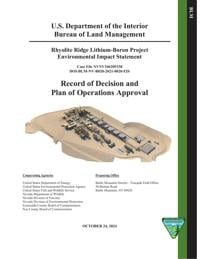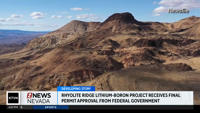 The U.S. Bureau of Land Management has given final permit approval for Ioneer's Rhyolite Ridge Lithium-Boron Project in Esmeralda County.