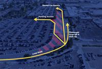 There are separate entry points for parking and rental cars.