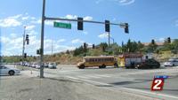 No one was injured after a car hit a Washoe County School District school bus in north Reno Monday afternoon.