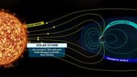 Normally the earth’s magnetic shield blocks any particles coming off the sun from reaching the earth’s atmosphere, but when there is a solar storm, it makes it easier for a particle to break through. A solar storm usually involves mass explosions on the sun, allowing the particles to shoot off the sun toward earth.