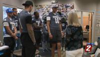 Northern Nevada Children’s Cancer Foundation (NNCCF) hosted 20 players of the University of Nevada, Reno football team, UNR cheerleaders and their mascot for a tour of the NNCCF offices.