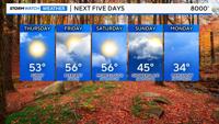 Leaves change with the seasons, and now is the time to see them before they all fall off on Sunday. According to Explorefall.com, most of northern Nevada will be past their peak next week, with peak foliage usually in October for the Truckee Meadows. It will be mild through Sunday, with a storm coming in late Sunday into Monday. This won't be a huge storm, but snow is likely in the Sierra. Highs will be in the 50's at 8000' through Saturday, before dropping into the 40's on Sunday and 30's on Monday.