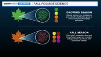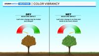 As chlorophyll production goes down during the fall season, the green color fades and some of the other colors are able to appear. Saturated vegetation tends to have more vibrant colors compared to dry vegetation.