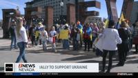 People rallied in support of Ukraine in Reno on Saturday.