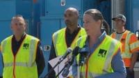 On a recent afternoon, Poppe — PG&E's CEO since 2021 — visited a construction site between Sacramento and San Francisco where crews were burying a stretch of overhead power lines. Poppe was there to celebrate the company meeting its goal of burying at least 350 miles (563 kilometers) of power lines this year, a milestone she says is proof the company can meet its ambitious targets.