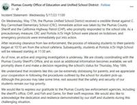 The sheriff's office says it's working with the school district to help find a resolution to the case.