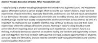 “The University of Nevada, Reno does not use race or ethnicity as built-in factors of consideration for admissions. Therefore, the recent ruling should have no anticipated impact on the University’s admissions process.”