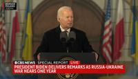 Biden's speech came one day after his daring, unannounced trip to Kyiv, where he met with Ukrainian President Volodymyr Zelenskyy.