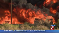 Officials with Churchill County say the property is a place where they sort railroad ties the fire appears to have started near the center of the yard, but winds fueled the flames and it spread to the entire property.