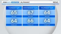 The record to beat on Tuesday is 65 and the forecasted high is 64. If Reno makes it to 68 on Wednesday, we’ll be able to break the record for December 10th as well. The forecasted high on Wednesday is 66, and overnight lows will be in the 30’s, which is several degrees above average too.
