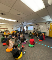 Also on Thursday, assistant conductor Sara Aldana continued her work with students from Anderson Elementary providing workshops on the basics of music composition to three music classes. Students got to write their own short compositions and play them together on the recorder. Â