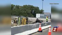 According to officials, a Waste Management Truck blew a tire which led to the driver losing control and going through a concrete barrier.