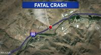 Nevada State Police say a 2016 Chrysler 200 driven by 58-year-old Ann Marie Graham was heading west when she tried to change lanes and hit the back of a Chevrolet Camaro, causing the Chrysler to spin into the right shoulder where it hit a guardrail.