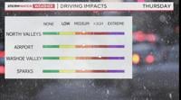 Visibility will be poor along I-580 towards Washoe Valley and Carson City on Thursday because of moderate to heavy snow. Travel is not advised and expect delays.Â