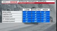 Mt. Rose Ski Tahoe will be a big winner due to lake effect and an easterly wind flow. Carson City, Washoe Valley, southeast Reno, and Virginia City could all pick up on lake enhanced snow and higher totals as a result.