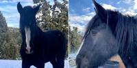 Deputies say, "Angus‘ unique history includes two+ years as a full-time police horse with the Kansas City Police Department. Angus fought a year-long battle in 2023 with eye cancer, and recently had to have his eye removed."