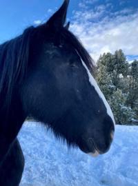 He's a 2,000 pound, 10-year-old 19th Shire/Percheron cross horse that was donated to the Storey County Mounted Unit to replace Diesel, that previously died.Â