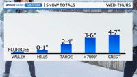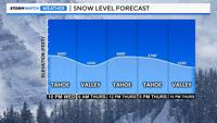 Majority of the snow will fall in the Sierra, with higher totals north of I-80 Thursday morning. Keep in mind the second storm is still several days away and the forecast will likely be tweaked here and there before then. Even a weak storm can cause some delays and impacts.