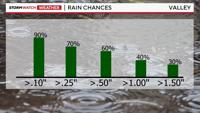 Rain totals will range from a quarter of an inch to an inch by Saturday in the valley. The Tahoe area could see over an inch of rain before it starts to snow. Rain and snow will continue to fall in northeast California, where a Flood Advisory is posted for parts of Lassen, Plumas, and Sierra Counties along the Susan River, for minor flooding.