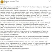 The Sundance bookstore in Reno is shutting down at the end of this month after nearly 40 years in business.