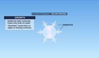In order for snow to form, it needs some sort of nuclei like dust particles for the super cold water droplets to freeze on. As more super cold water droplets freeze on the dust particle, a crystal begins to form and take on a hexagonal shape. As more water droplets stick on the crystal, dendrites begin to form on each end. Dendrites looks like arms coming out of the outside of the crystal.