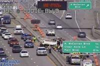 A truck that crashed into the center median caused temporary delays on Highway 395 south near north McCarran Blvd.