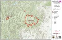 Crews worked along edges of the fire, and aircraft were expected to continue to make water and retardant drops to help slow the fire’s advance, said Sara Rouse, a spokesperson for the interagency team assigned to the fire. High temperatures and erratic winds that can help fan flames were predicted, she said.