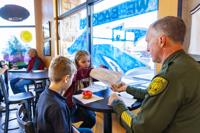 Sheriff Balaam took the kids to school in a Washoe County Sheriff's Office patrol car and even swung by Doughboys Donuts beforehand to treat them all to their choice of donuts before dropping them off.