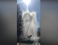 North Lake Tahoe Fire posted a photo of water spraying into the water, from the ground.Â