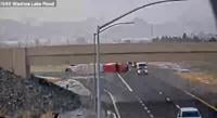 The truck was blown over by wind according to a spokesperson from the Nevada State Police and hit an unoccupied vehicle on the shoulder of the road as it crashed.