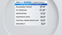 Places like the Central Sierra Snow Lab measured 13 inches of snow. Mt. Rose Ski got over a foot as well. Overall, more snow fell on the western side of Lake Tahoe compared to the east due to shadowing.