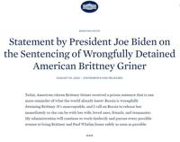 “I call on Russia to release her immediately so she can be with her wife, loved ones, friends, and teammates,” Biden said, adding that he would continue to work to bring home Griner and Paul Whelan, an American imprisoned in Russia on an espionage conviction.