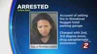 A woman is behind bars accused of setting a car fire in the Wendover Nugget hotel parking garage earlier this week.