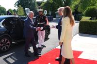 Trump and first lady Melania Trump greeted Charles and Queen Camilla as they arrived, posing for photos and exchanging small talk before they went inside for tea in the Green Room. Afterward, the couples went down to the south grounds to see a new beehive in the shape of the White House that the first lady had installed last week.