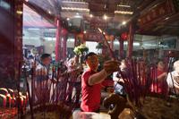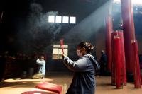 Holding up a cluster of incense sticks, many bowed their heads several times before planting the sticks in containers placed in front of a temple hall.